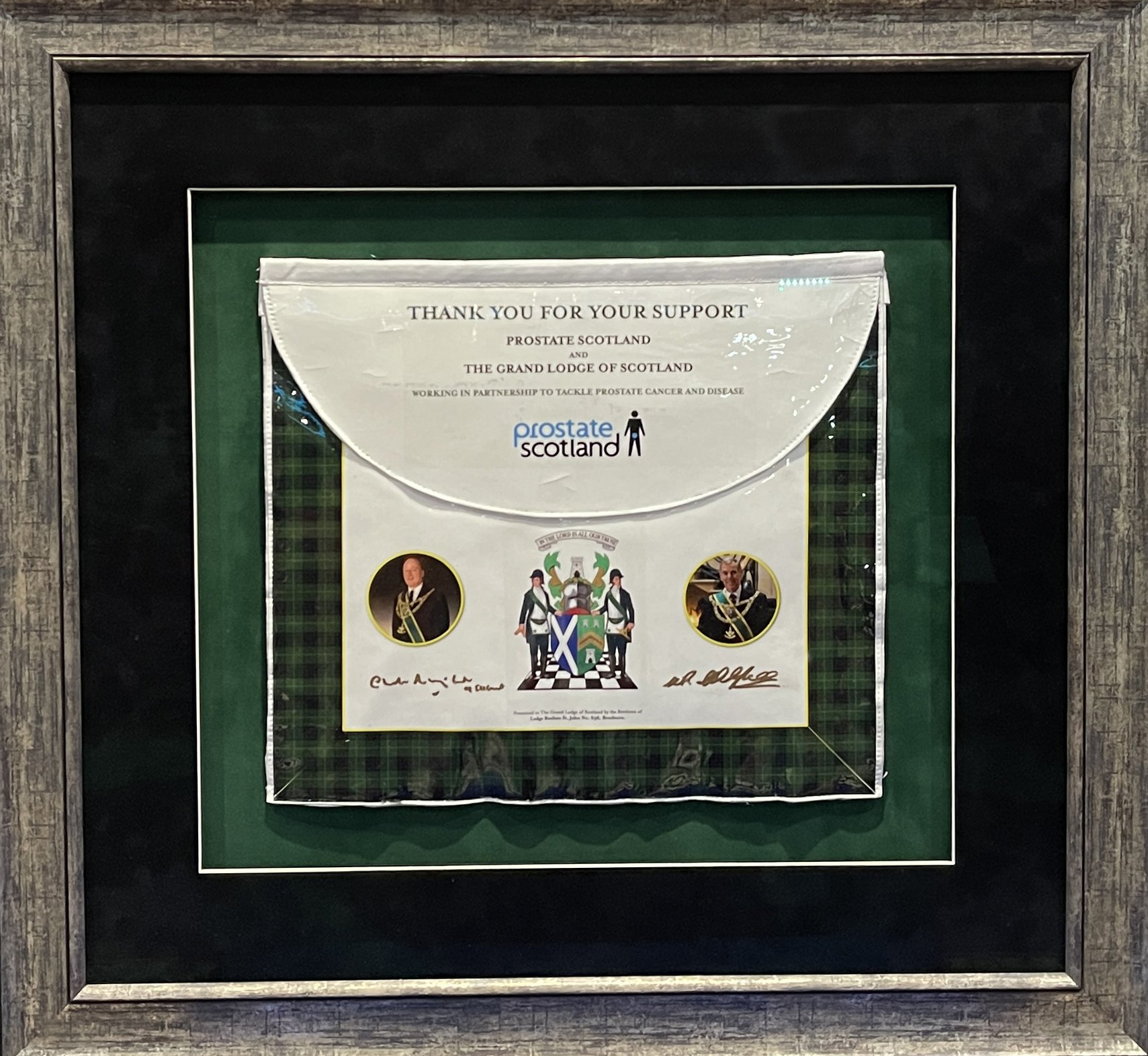The Grand Master Mason, Brother William Ramsay McGhee and the I.P.G.M.M. Brother Charles Iain Robert Wolrige Gordon of Esslemont have been kind enough to sign the item,
